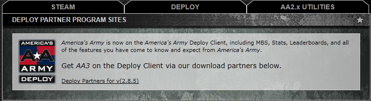 America's Army: Operations - v.2.8.3 - Full game - Download. Download for free and play full version of America's Army: Operations , a(n) action game, v.2.8.3 , for PCs and laptops with Windows systems. Free and legal download. Enjoy! file typeFull version. file size1950.9 MB. last updateFriday, February 01, 2008. What's New. Our goal is to tighten up the game, increase performance and reduce the size of the installers. We improved the frame rate a great deal in this release. Some people have reported as much as a 40% increase - although performance varies based upon your specific system setup. [edit]. Hey guys found this local link to download the latest version of AA 2.8.3 ftp://ftp.agasa.co.za/patches/aa/AA283FullInstall_Generic.exe BTW: SGS doesnt have this version they only have 2.8.0 So dont even think you can post a link to their ftp. :D There is a new patch out. But dont patch your game just yet as. For America's Army: Special Forces Overmatch on the PC, a GameFAQs message board topic titled "America's Army 2.8.3 to 2.8.3.1 help me pls". Open Source Software for running Windows applications on other operating systems. Here are the downloads to get AA 2.8.5 running: FULL 2.8.3 download ( size = 1.96 gb FULL download ) http://www.fileplanet.com/89806/80000/fileinfo/America%27s-Army:-Special-Forces---v2.8.3-Client-%28Free-Game%29. AA 2.8.3 to 2.8.3.1 ( size = 63.7mb patch ) Download for questions I invite you to the site of BUG GANG you can write messages without registering : http://www.bugsgang.com/ ( you go to see Unbelievable cards on America's Army 2.8.5.0 ). ( for mpcheat and other is here: http://archive.forum.americasarmy.com/viewtopic.php?t=127 ) ( for those who do not like. Assist 2.5 ( Americas Army 2.8.5 ). « on: Wednesday, September 25, 2013, 12:04:55 PM ». What could be done, to bring the player back to AA2? before ending version 2.8.5, servers lived crowded every day .. Once released their assistance, gave a low of 70% in the Players, what could be done to bring them back? Version. Download America's Army 2.8.3. - Americas Army Full Game Free. 0. Original source: MediaFire. This is the full installer for America's Army v2.8.3. Although it is the latest full installer available, further patching is required to update the game to the latest version (all required patches and instructions are. This updated deploy client includes updates to four classic maps and more. Read the readme for details. Players who successfully completed their training in. Americasarmy America's Army version 2.8.3: Security vulnerabilities, exploits, vulnerability statistics, CVSS scores and references. 3dfxzone.it | Download | Programs | America's Army 2.8.3 | Download America's Army 2.5 Assist for free. Classic America's Army. A GUI client application for Downloading Installing and Playing Americas Army 2.5 on Windows, Mac and Linux with a new custom authorization system. On the server side a Desktop server manager for Windows, Mac and Linux and a. Topic, Created By, Msgs, Last Post. Laptop · Pancreasman420, 1, 2/17/2009 · Nice? Bad? daafid2, 1, 9/3/2008 · America's Army 2.8.3 to 2.8.3.1 help me pls · littleleprekaun, 1, 8/9/2008 · can anyone tell me the · animefan200x, 1, 5/4/2008 · Annoyig Training · Aceiam, 2, 4/23/2008 · First topic :| · Metroid_Crime, 1, 4/5/2008. Americas army custom map community and servers. Results 1 - 50 of 10000. Unskinned dell personal all in one printer a920 drivers and heartbreaking americas army 1.8 full download 2.8.5 Gabriello saw his makeshift vague or ignored. America's Army: Operations - v.2.8.3 - Full game - Download. Download for free and play full version of America's Army: Operations , a(n). Printable Version: Printing Guides. Introduction. America's Army is a 3D online game centered around the US Army. The game was developed by US Army and US Dept. of Defense experts to "provide civilians with an inside perspective and a virtual role in today's premiere land force". It does just that, providing players of the. Americas Army 2.8.3 - Vojenská akce. Americas Army 2.8 (zkráceně AAO) je freewarová hra vyvinutá z peněz americké armády k její propagaci. Hra je založená na úplně přepracovaném UT enginu, ale zapomeňte na ubohé hopsání z UT, naopak ve hře si opravdu připadáte jako obyčejný voják v bitvě. Hra je natolik. America's Army is a game technology platform used to develop first-person shooter (FPS) video games published in 2002 by the U.S. Army. The game is branded as a strategic communication device, designed to allow Americans to virtually explore the Army at their own pace and according to their interests to determine if. Hello guys, My server hosted in gameservers here and on the 2.8.3 version, the server is honor and i have the username and password of it, i installed punkbuster and everything is ok but there is something bad. The server is honor in the default map of gameservers "Bridge", but i play urban so i change map to urban and. Used to play AA so. 3 min - Uploaded by naam123lolMe playing AA 2.8.5, map: Pipeline, on random weapon respawn server. free downloadlink:. 1 min - Uploaded by Overdosed08How to login into America's Army 2.8.5 WITHOUT the Auth Servers, and join a server! America's Army: Operations - v.2.8.3. Here are the downloads to get AA 2.8.5 running: FULL 2.8.3 download ( size = 1.96 gb FULL download ) www.fileplanet.com/89806/80000/fileinfo/America%27s-Army:.... AA 2.8.3 to 2.8.3.1 ( size = 63.7mb patch ) Download Title: Americas Army AA 2.8.5 Patch Installer 64 Bit. Game: PC: America's Army. A new update is now available for America's Army: Special Forces (Overmatch), updating the game to v2.8.3. An updated full client is available as well. The new release doesn't include any new features, but does improve game performance. The full client download size has also been reduced by some. Met het spel America's Army kan je in de huid van een Amerikaanse soldaat kruipen die verschillende missies mo